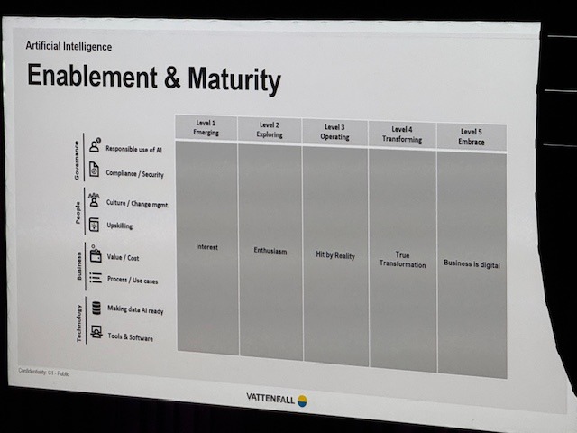 Annars var det idag andra dagen av Energi 2026. Tog båten ut till Djurgården i morse igen för de sista delarna av programmet. Första temat så klart AI och digitalisering där man fått ihop en riktigt intressant talarlista med bland annat Vattenfalls skarpa CIO/IT-chef Jens Zerbst. Några kul användningsområden visades upp, bland annat Öresundskrafts ”Rutin-Rut” som hjälper alla tillrätta i det snärjiiga ruutin och instruktionsträsket som lätt uppstår i stora breda verksamheter,