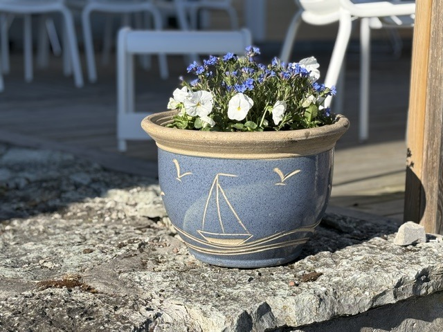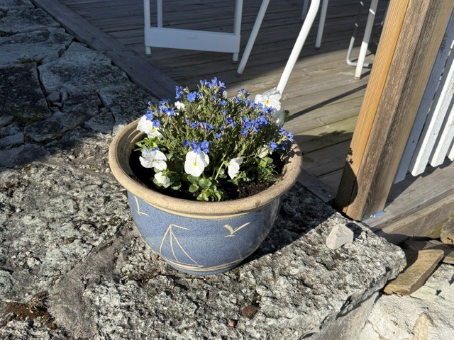 Det fina vädret och värmen på eftermiddagarna inbjöd till att vara ute i trädgården även om det är för kalllt att börja med ”vårbruket” på allvar. En fin lerkruka till vårblommorna hittade vi i alla fall på second hand och satte på terrasen. Annars har vi haft en väldigt lugn helg här med bara lite småplock och mest njutit av väret.
