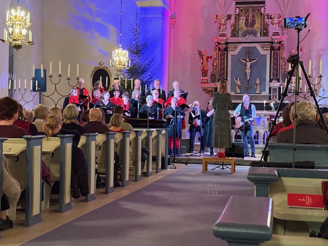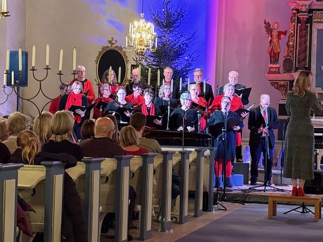 Den här gången var settingen orkester, kör och många solister. Programmet var en trevlig mix av äldre och nyare julklassiker. Lite extra kul var när deras duktiga tenor Micke Lång körde Adolphson & Falks klassiker ”Mer Jul” på gitarr ihop med den andra manliga solisten, den har jag inte hört någon göra live och akustiskt förut. Respekt. Konserten höll på drygt en och en halv timme innan man avslutade med en fin version av Adams julsång, mer känd som ”O helga natt” fint arrangerad med både en duktig tenor och den fina kören man fått ihop för kvällen, till slutnumret också uppbackad av alla solisterna.