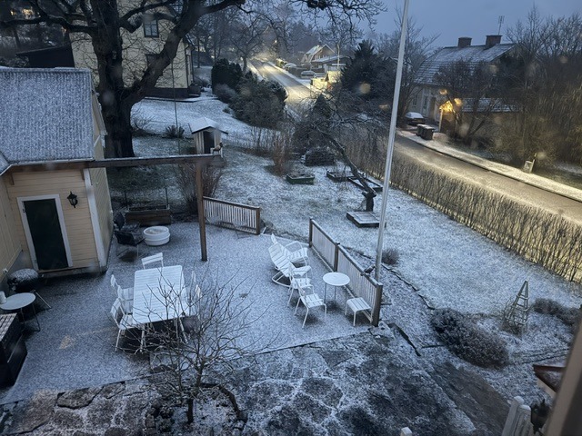 Var uppe lite tidigt nu på morgonen och såg att regnet under natten slagit om till snö. Lite tråkigt att börja påsken med snö bland alla vårblommorna men det ska inte ligga kvar så länge, enligt prognoserna blir det 10 grader och sol i eftermiddag.