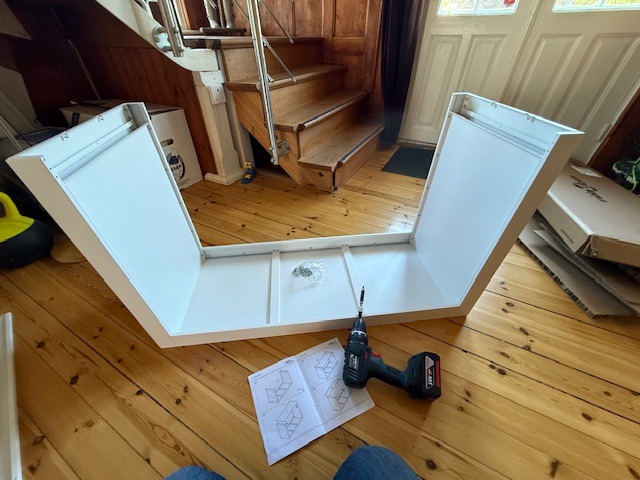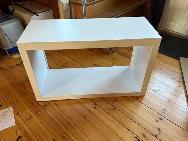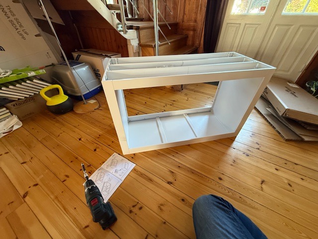 Idag har jag varvat jobb med att montera grejorna till veden. Det tog längre tid än planerat att få ihop byggsatsen med de 162 skruvarna till den vita vedlåda det skulle bli. Det var hög precision och relativt genomtänkt att montera det mesta. På slutet blev det dock väldigt frustrerande när några av de sista skruvaran som skulle dit för att få ihop och sätta dit balkarna på undersidan inte gick att komma åt med varken fingrar eller verktyg på ett vettigt sätt. Det var först på sen eftermiddag som jag blev färdig och kunde ta tag i vedskjulet.